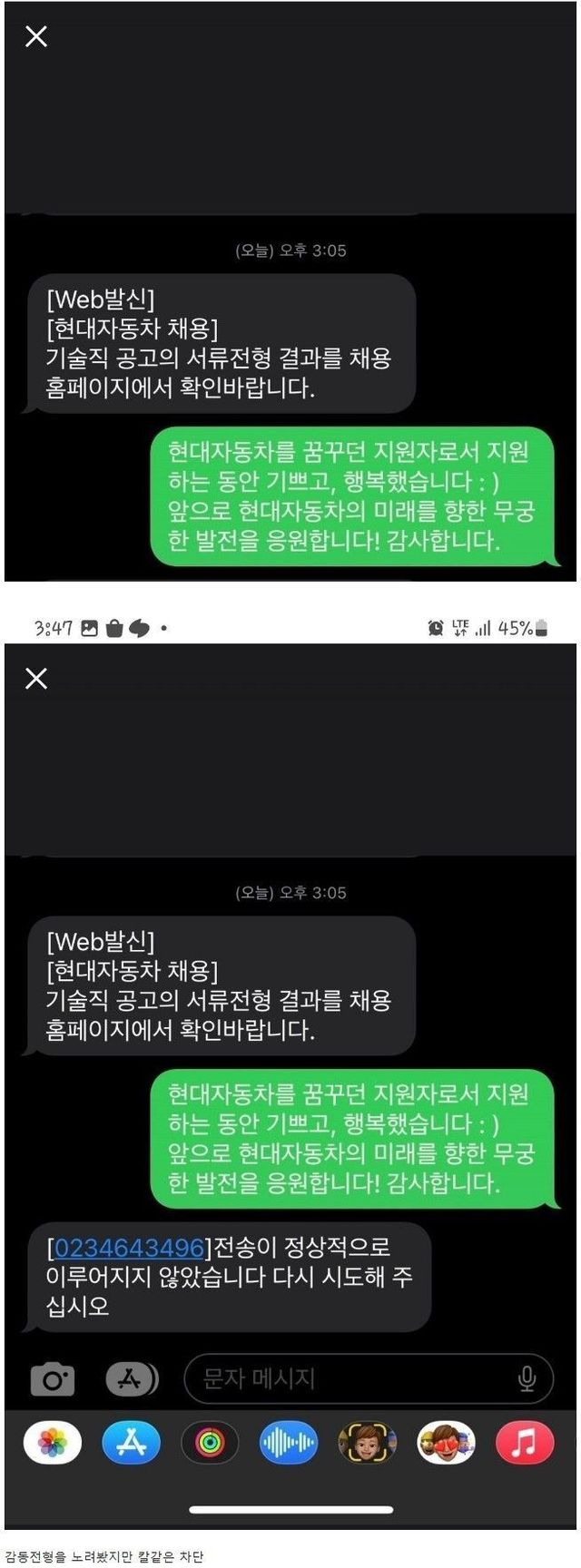 현대차 불합격하고 문자 보냈는데 답장 옴